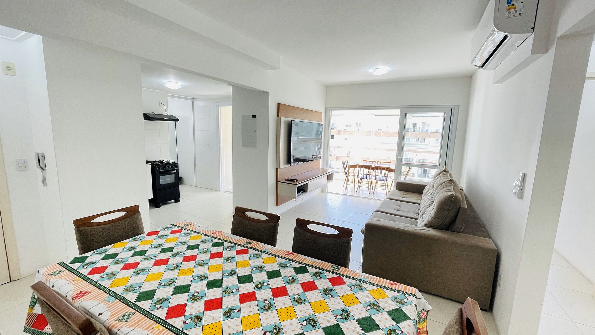 O apartamento é exatamente como nas fotos, amplo, bem localizado, ótimo serviço de condomínio. A Internet, TV e ar-condicionados funcionam perfeitamente. Está próximo de tudo, bancos, padarias, mercado, restaurantes. Algumas coisas a pontuar sobre o local, as coisas de cozinha estão muito gastas, panos de pratos encardidos, tábuas de carne manchadas, frigiedeira e panelas muito riscadas e não são mais antiaderentes, copos e tigelas são insuficientes para 6 pessoas, talheres têm exatamente 6 de cada. Levamos comidas prontas apenas pa aquecer mas o forno apresentou problema e não parava aceso. Os colchões das camas são de mola, bem desconfortáveis, as colchas da cama de casal são pequenas, se cobre um descobre o outro! Então, se for usar esses itens sugiro que levem!